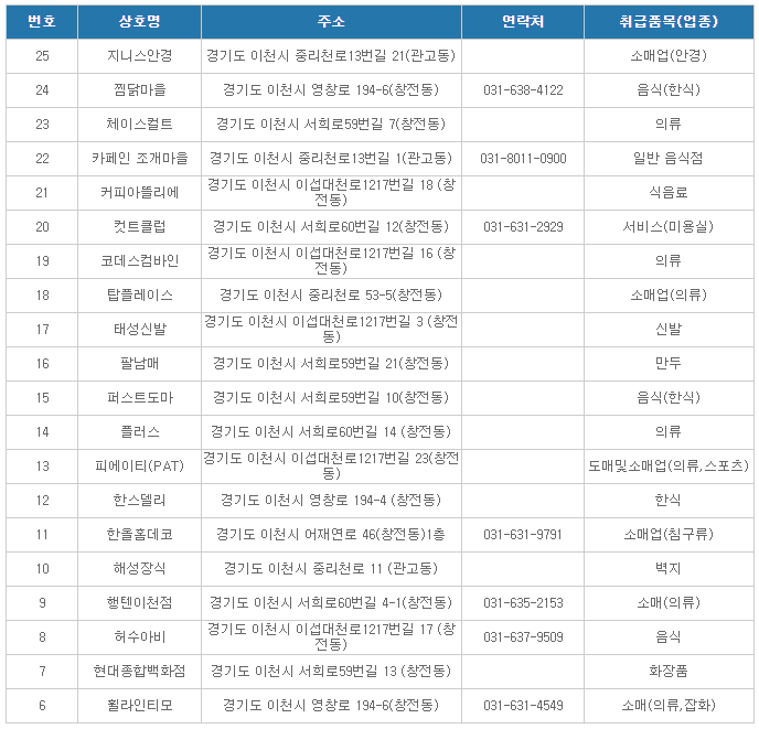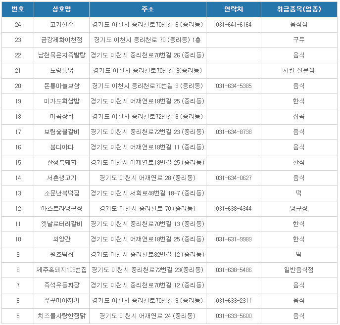 이천온누리상품권 사용처( sk하이닉스 상점가 가맹점2 )