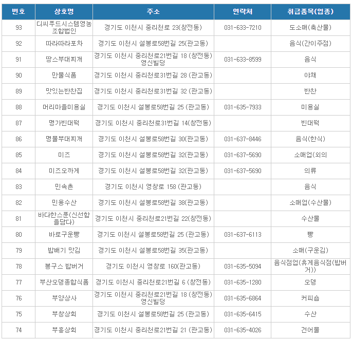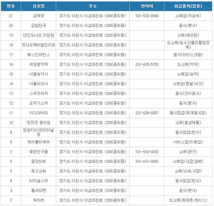 이천온누리상품권 사용처(sk하이닉스 상점가 가맹점1)