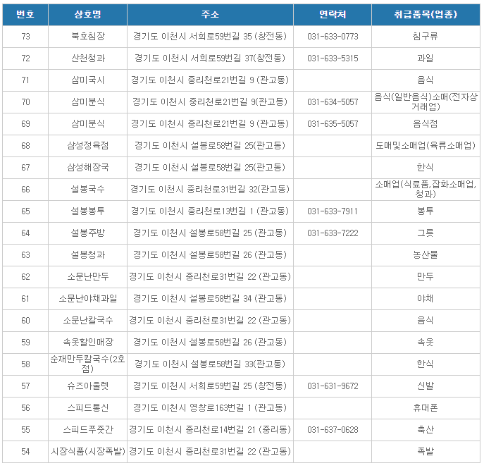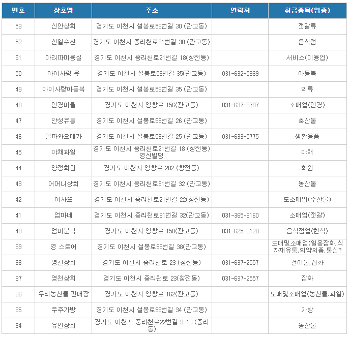 이천온누리상품권 사용처( 관고전통시장 가맹점 6 )