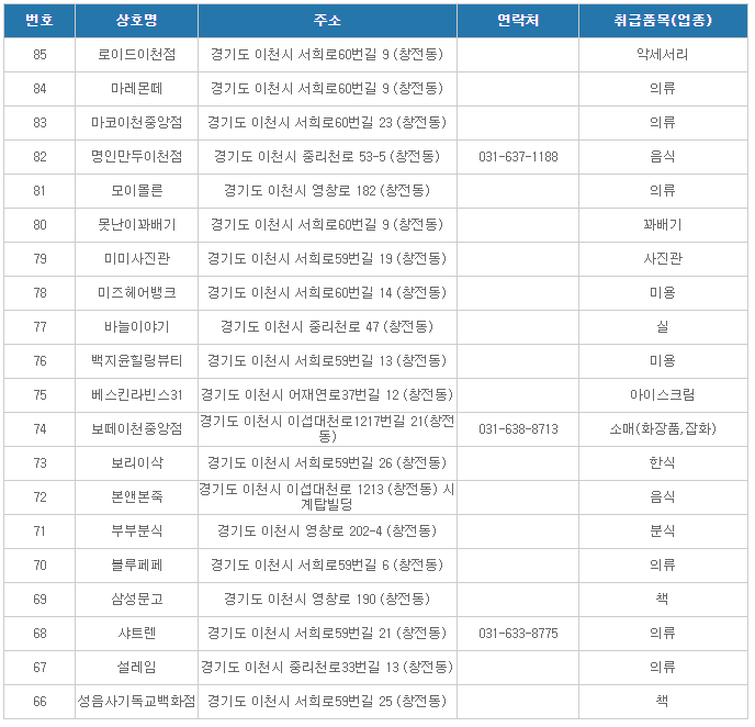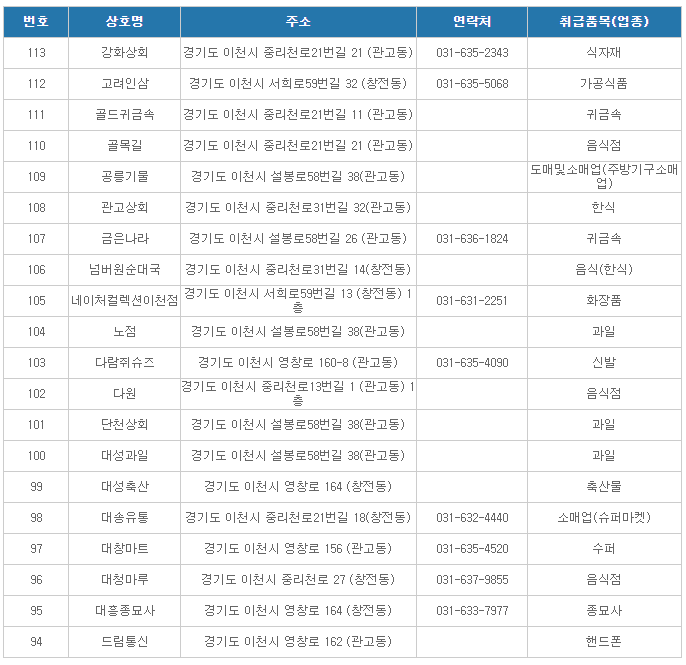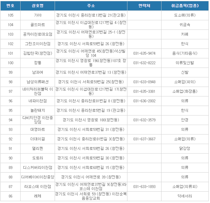 이천온누리상품권 사용처( 이천중앙로상가2 )