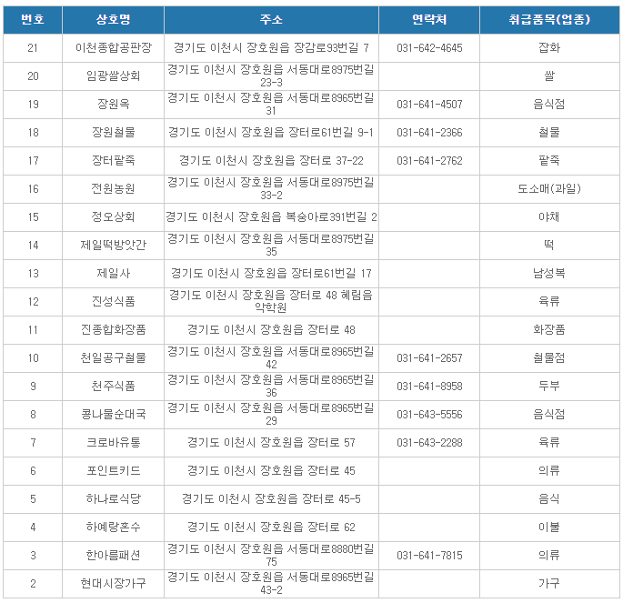 이천온누리상품권 사용처( 장호원 전통시장2 )