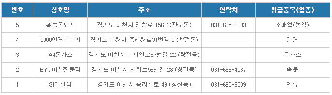 이천온누리상품권 사용처( 이천중앙로상가5 )